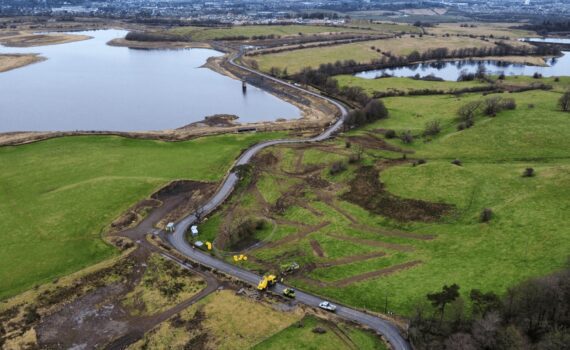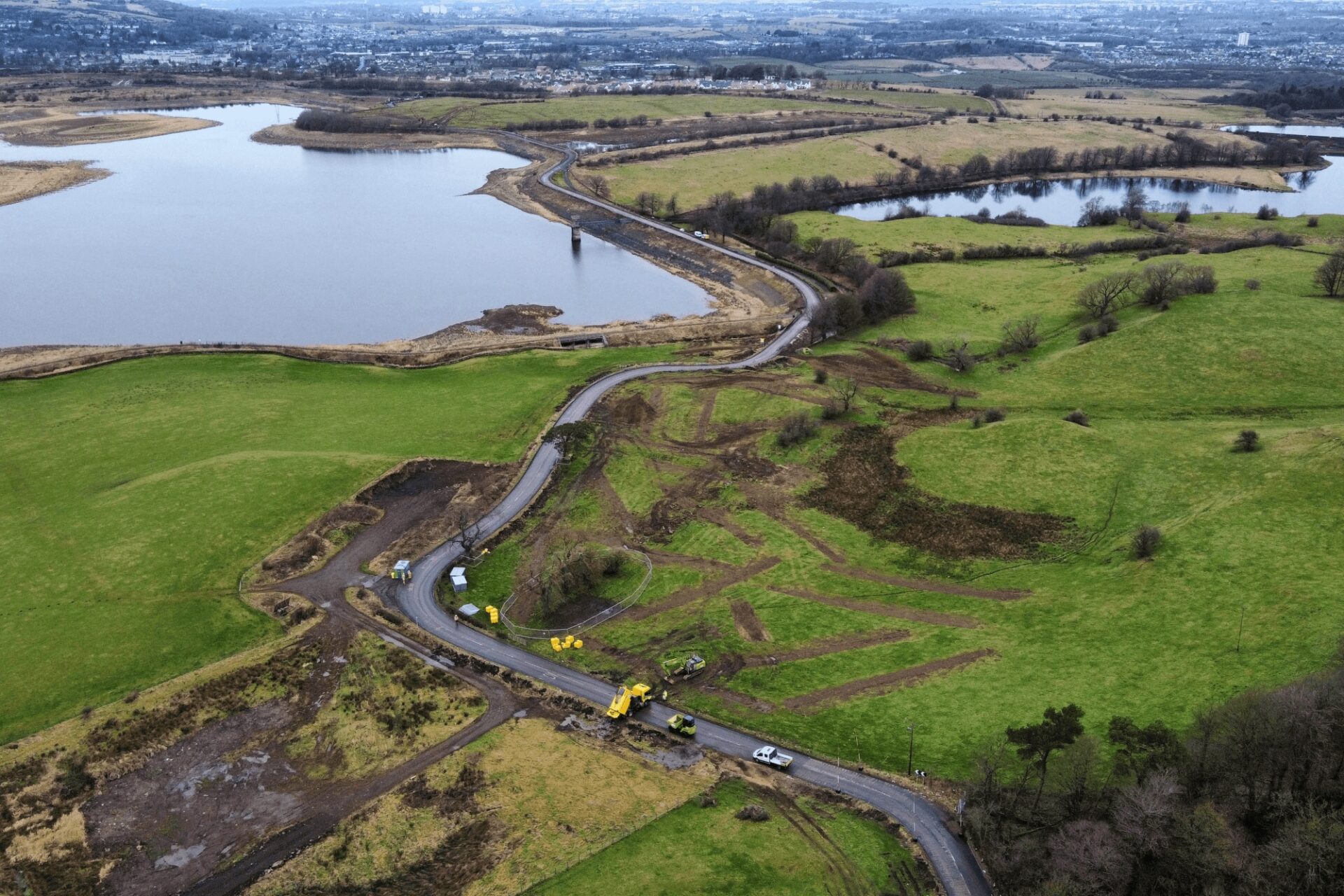 The Aurs Road project aims to improve local connections between Newton Mearns and Barrhead, and will release land to develop the Dams to Darnley Visitor Facilities sub-project which will follow on post-completion. The project includes road realignment, replacement of a weak bridge to allow a bus route along the corridor, and the provision of a pedestrian/cycle promenade along Balgray reservoir.